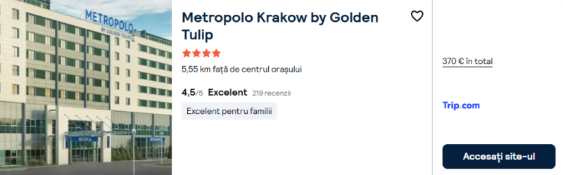 235 €/pers. (zbor si cazare Metropolo Krakow by Golden Tulip )