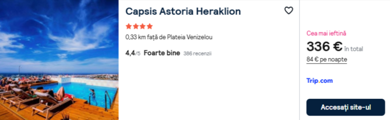 230 €/pers. (zbor si cazare Capsis Astoria Heraklion )