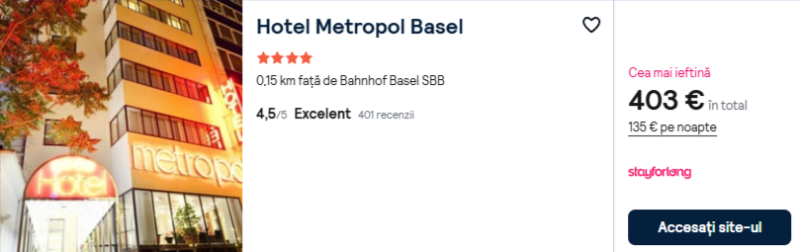 257 €/pers. (zbor si cazare Hotel Metropol Basel )
