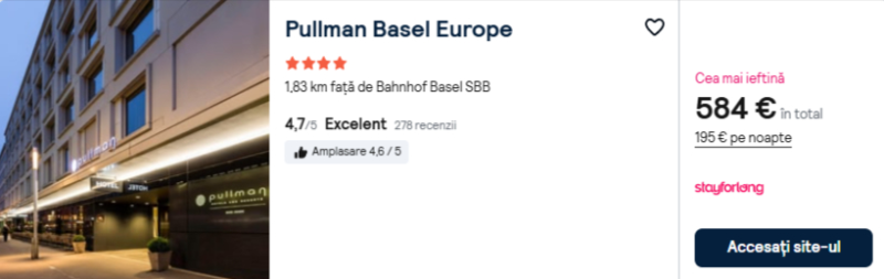 347 €/pers. (zbor si cazare Pullman Basel Europe )