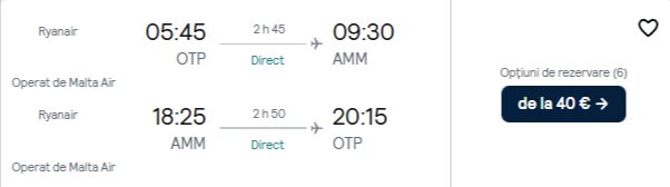 Este o ocazie unica sa vizitezi Amman, Marea Moarta, Petra sau Wadi Rum . In propunerea de mai jos iti poti rezerva zborul dus-intors iar baza o poti avea in Amman pentru a explora destinatia.