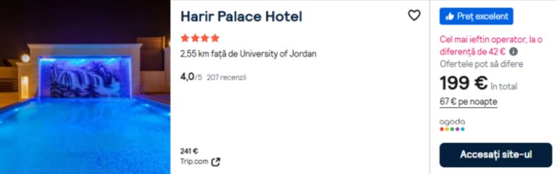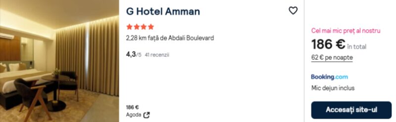 133 €/pers. (zbor si cazare G Hotel Amman )