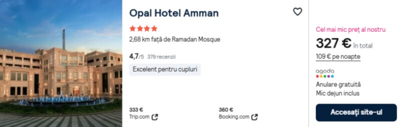 204 €/pers. (zbor si cazare Opal Hotel Amman )