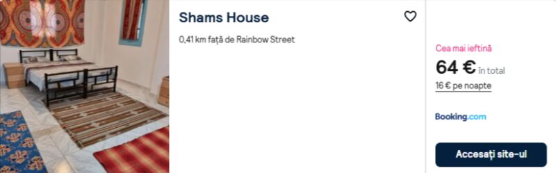 90 €/pers. (zbor si cazare Shams House )