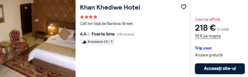 167 €/pers. (zbor si cazare Khan Khediwe Hotel )