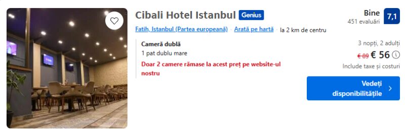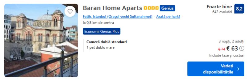 123 €/pers. (zbor si cazare Cibali Hotel Istanbul )