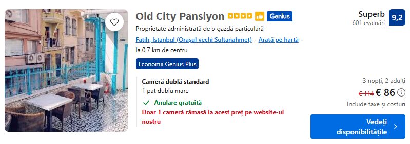 138 €/pers. (zbor si cazare Old City Pansiyon )