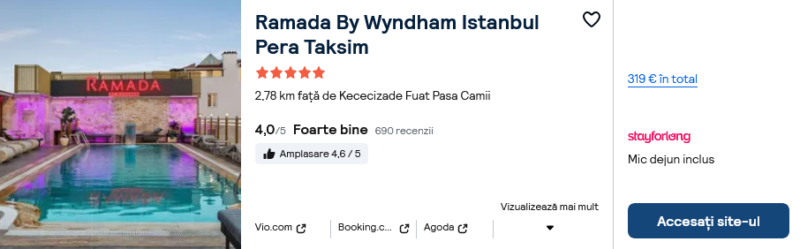240 €/pers. (zbor si cazare Ramada by Wyndham Istanbul )