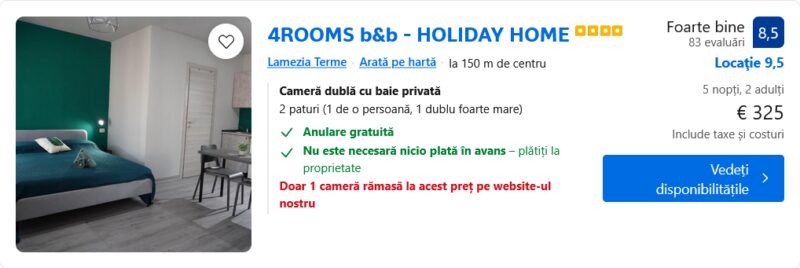 214 €/pers. (zbor si cazare 4ROOMS b&b – HOLIDAY HOME )