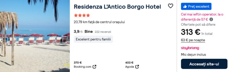 218 €/pers. (zbor si cazare Residenza L’Antico Borgo Hotel )