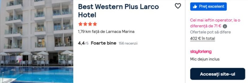 249 €/pers. (zbor si cazare Best Western Plus Larco Hotel )