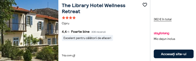 258 €/pers. (zbor si cazare The Library Hotel Wellness Retreat )