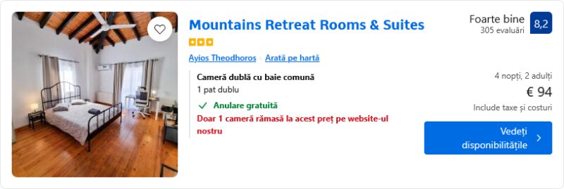 75 €/pers. (zbor si cazare Mountains Retreat Rooms & Suites )