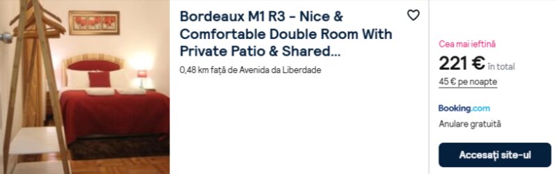 305 €/pers. (zbor si cazare Bordeaux M1 R3 – Nice & Comfortable Double Room With Private Patio & Shared Bathroom )