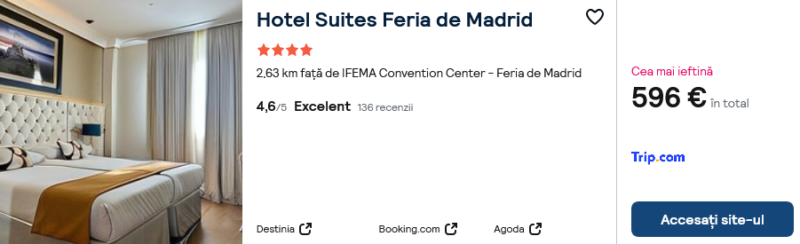 376 €/pers. (zbor si cazare Hotel Suites Feria de Madrid )