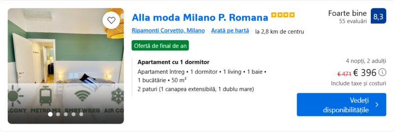 227 €/pers. (zbor si cazare Alla moda Milano P. Romana )