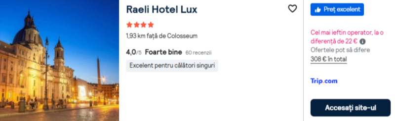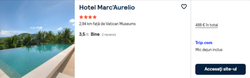 302 €/pers. (zbor si cazare Hotel Marc’Aurelio )