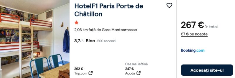 173 €/pers. (zbor si cazare HotelF1 Paris Porte de Chatillon )