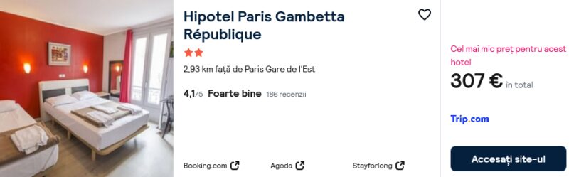 188 €/pers. (zbor si cazare Hipotel Paris Gambetta )