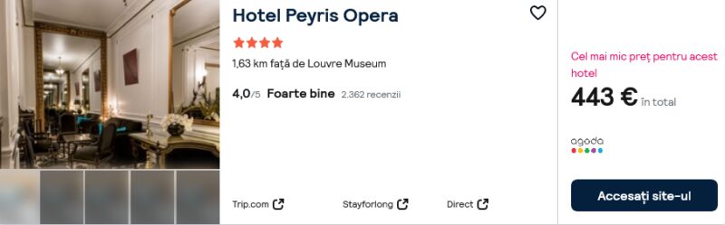 256 €/pers. (zbor si cazare Hotel Peyris Opera )