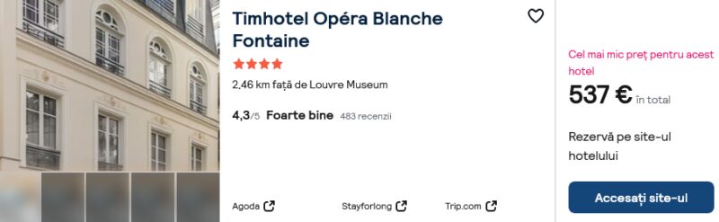 303 €/pers. (zbor si cazare Timhotel Opera Blanche Fontaine )
