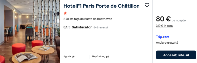 202 €/pers. (zbor si cazare HotelF1 Paris Porte de Chatillon )