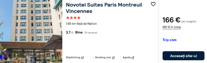 383 €/pers. (zbor si cazare Novotel Suites Paris Montreuil Vincennes )