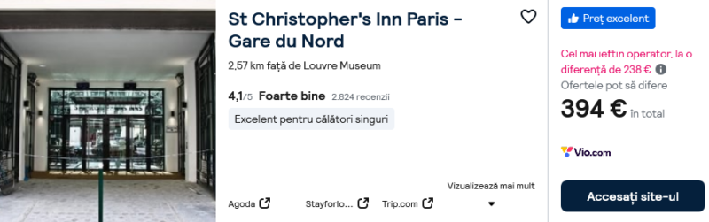 230 €/pers. (zbor si cazare St Christopher’s Inn Paris )