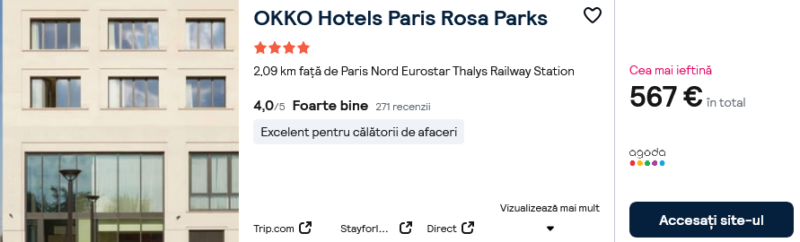 317 €/pers. (zbor si cazare OKKO Hotels Paris Rosa Parks )