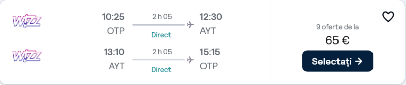 199 €/pers. (zbor si cazare Der Inn Hotel Konyaaltı )