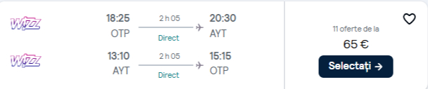 256 €/pers. (zbor si cazare Der Inn Hotel Konyaaltı )