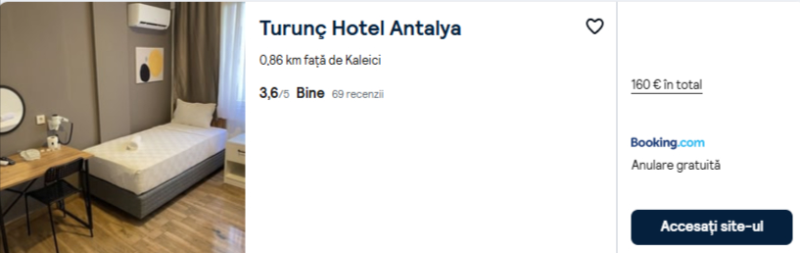 145 €/pers. (zbor si cazare Turunç Hotel Antalya )