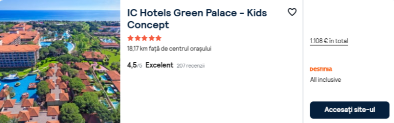 617 €/pers. (zbor si cazare IC Hotels Green Palace – Kids Concept )