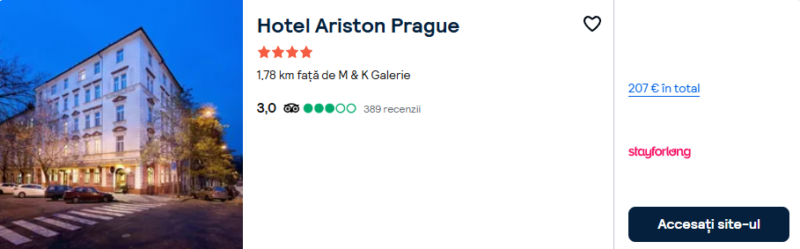 250 €/pers. (zbor si cazare Hotel Ariston Prague )