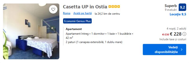 163 €/pers. (zbor si cazare Casetta UP in Ostia )