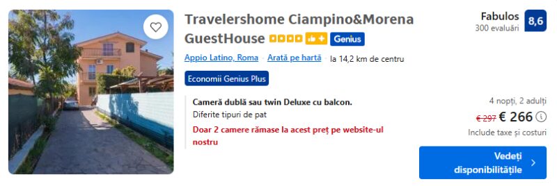 182 €/pers. (zbor si cazare Travelershome Ciampino&Morena GuestHouse )
