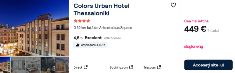 263 €/pers. (zbor si cazare Colors Urban Hotel Thessaloniki )