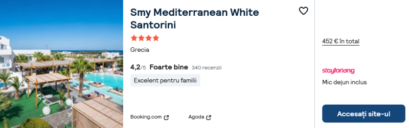 314 €/pers. (zbor si cazare Smy Mediterranean White Santorini )