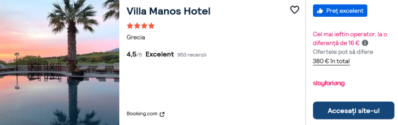 288 €/pers. (zbor si cazare Villa Manos Hotel )