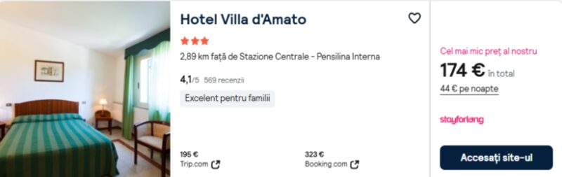 220 €/pers. (zbor si cazare Hotel Villa d’Amato )