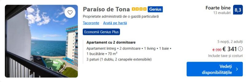 In exemplul de mai jos am descoperit o oferta clara si directa: zbor dus-intors plus cazare la pretul de 192 euro de persoana. O alegere inspirata pentru cei care cauta libertate si flexibilitate in vacante.