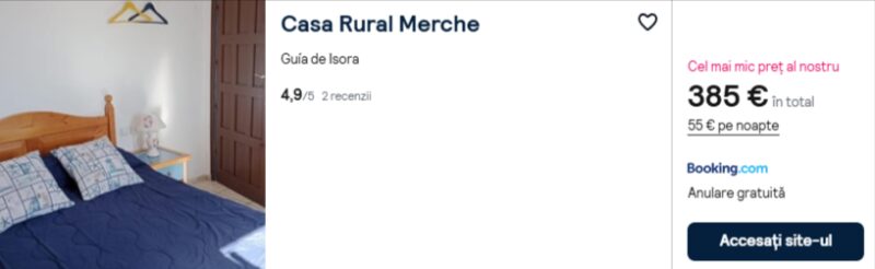312 €/pers. (zbor si cazare Casa Rural Merche )