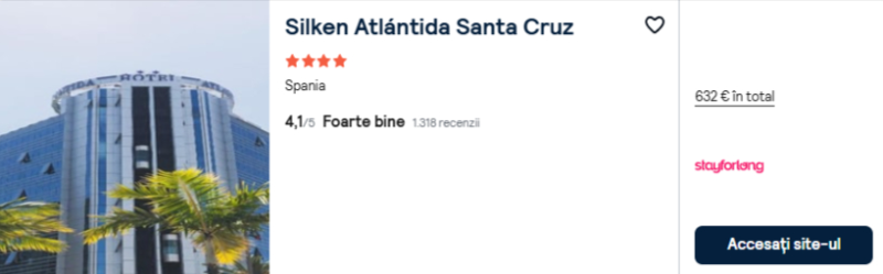 476 €/pers. (zbor si cazare Silken Atlántida Santa Cruz )