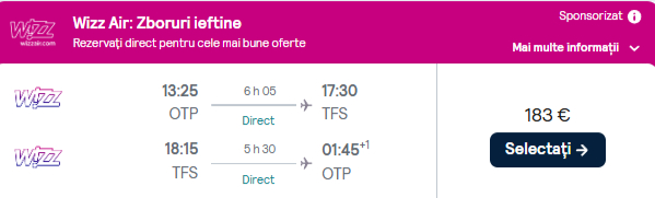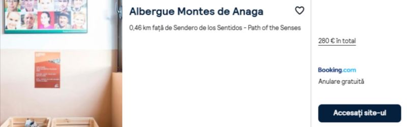 323 €/pers. (zbor si cazare Albergue Montes de Anaga )