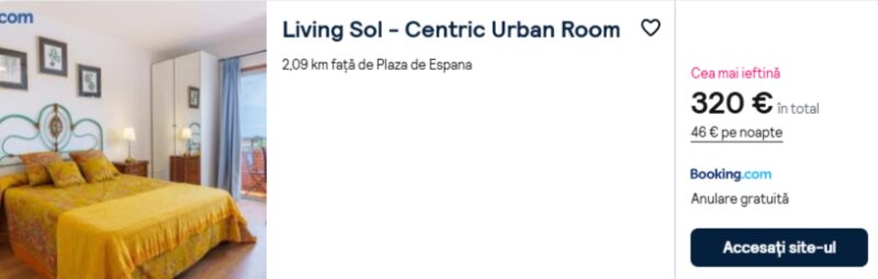 422 €/pers. (zbor si cazare Living Sol – Centric Urban Room )