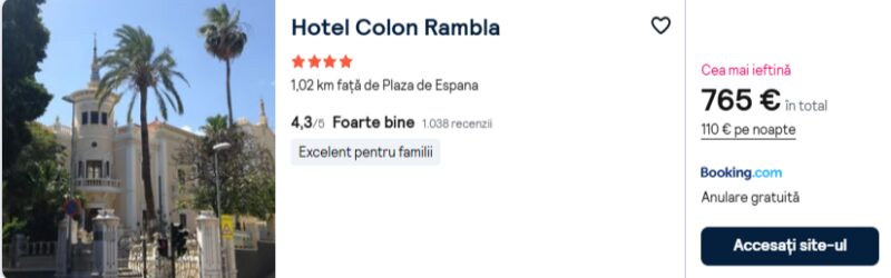 645 €/pers. (zbor si cazare Hotel Colon Rambla )