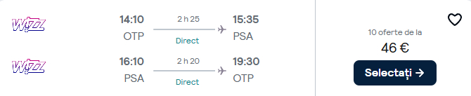 267 €/pers. (zbor si cazare Hotel Galilei )