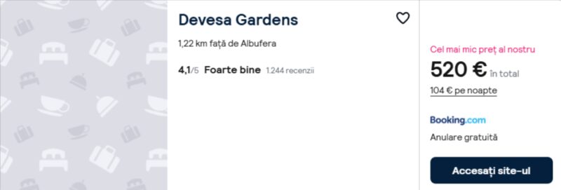 354 €/pers. (zbor si cazare Devesa Gardens )