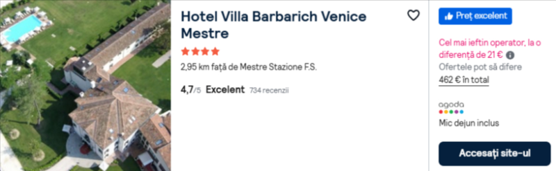 264 €/pers. (zbor si cazare Hotel Villa Barbarich Venice Mestre )