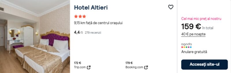 115 €/pers. (zbor si cazare Hotel Altieri )